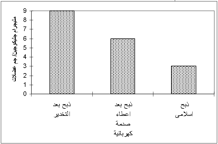 شكل يبين مستوى الجلايكوجين في عضلات بعد الذبح لثلاثة انواع من الذبح