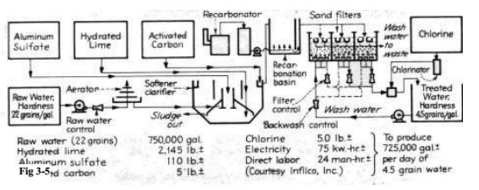 بينت الصورة ادناه مخطط الجريان في منشأة لمعالجة المياه البلدية ، حيث تتم فيه عمليتا التنقية والتيسير .