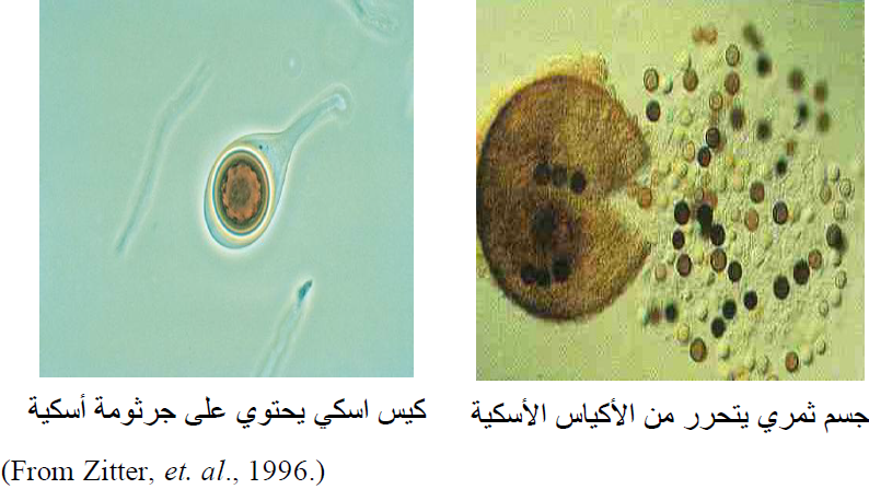 شكل رقم (1): الجسم الثمر يتحرر منه الأكياس الأسكية والجرثومة الأسكية
