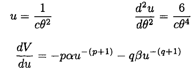 A particle moves in two dimensions under the influence of a central force determined by the potential V(r) = αrp + βrq Find the powers p and q which make it possible to achieve a spiral orbit of the form r = cθ2 with a constant.