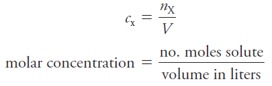 The molar concentration cx of a solution of a solute species X is the number of moles of that species that is contained in 1 liter of the solution (not 1 L of the solvent).
