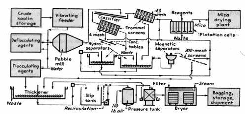 - يمزج الفلدسبار ، والطين ، والصوان بالماء في جبالة ( خلاطة الطين والماء ) ثم يمرر من خلال فرازة مغنطيسية ، ويصفى ، ويختزن .