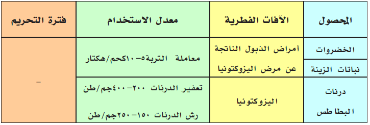 - لا يسمح برعي الماشية في المناطق المعاملة أو تقديم العلف المعامل قبل مرور 21 يوماً على الرش.