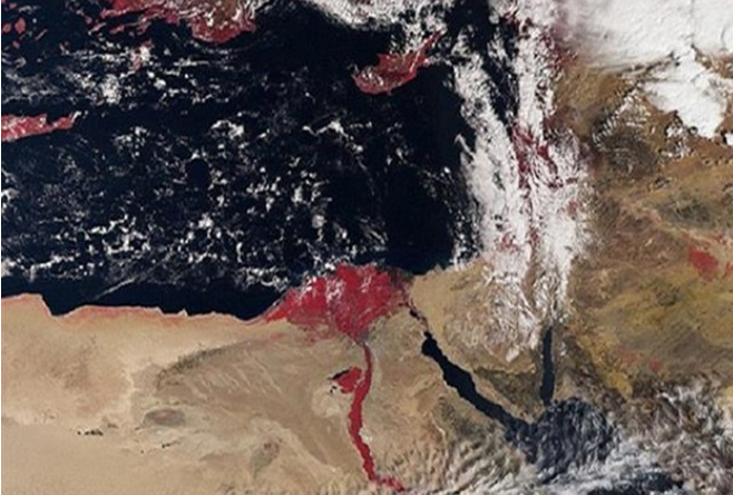 ورصد القمر الصناعي بتاريخ 3 مارس الماضي في الصورة نهر النيل والدلتا وصحراء شمال أفريقيا والبحر الأحمر وجزءًا من منطقة الشرق الأوسط وجزيرتي قبرص وكريت.