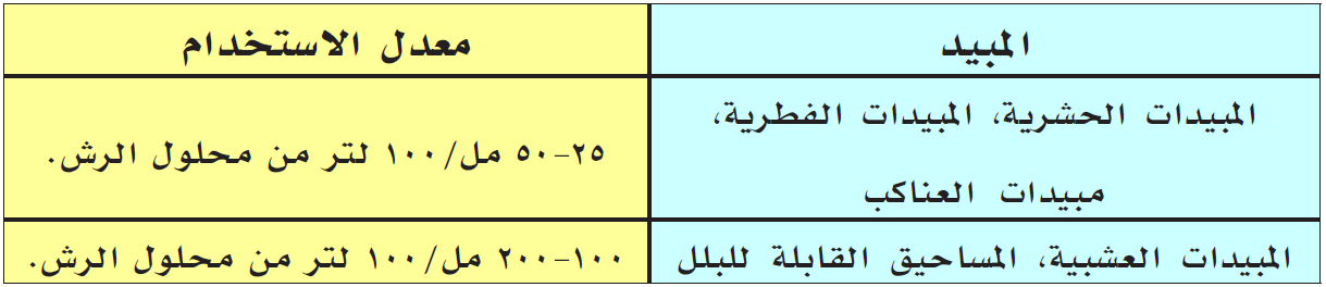 2. في حالة المركزات القابلة للاستحلاب يضاف بعد الاستحلاب التام للمبيد في خزان الرش.