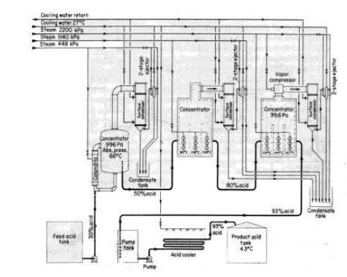 الصورة 1-2 مخطط انتاج طريقة (SM) Mantius - Simonson الخوائية لتركيز حمض الكبريت تحت الفراغ .