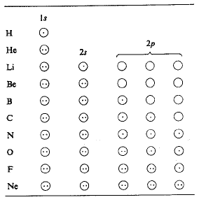 يعطينا الجدول 1.1 التشكيل الالكتروني للعناصر العشرة الأولى في الجدول الدوري ويمكن أن نرى أن المدار الالكتروني لا يشغل قبل أن تمتلئ المدارات ذات الطاقة الأدنى منه (مثلا يمتلئ 2s بعد 1s، و 1s، و 2p بعد 2s).