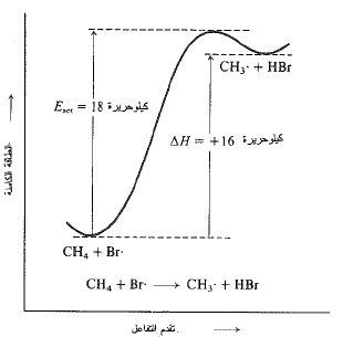الشكل 2.1: تغيرات الطاقة الكامنة مع تقدم التفاعل: تفاعل الميثان – ذرة بروم
