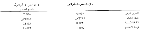 فهما يعطيان الألكنات عند معالجتهما بحمض الكبريت الساخن، ويعطيان بروميدات الألكيل عند معالجتهما بـ HBr، والإسترات عند معالجتها بحمض الأسيتيك. أضف الى ذلك أنهما يشكلان هذه المتنجات بالسرعة نفسها تماماً، يمكننا أن نرى لماذا يجب أن يكون الأمر كذلك. فالذرات التي تتعرض للهجوم في كل حالة تتأثر فاعليتها بالمجموعة نفسها من المتبادلات، وإن الكاشف الذي يقترب من كل نوع من الجزيئات يواجه الوسط نفسه ما عدا، طبعاً، الوسط الذي يكون خيالاً للآخر في المرآة.
