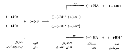 ناقشنا حتى الآن في هذا الفصل تفاعلات المركبات الكيرالية مع الكواشف غير الفعالة ضوئياً. دعنا ندرس الآن تفاعلاتها مع كواشف فعالة ضوئياً، ثم نتفحص أحد أهم تطبيقاتها وهو تفريق resolution المزيج الراسيمي. وهذا يعني فصل المزيج الراسيمي الى متخايلات.
