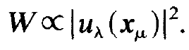 interaction with an atom at the position x = 0 or at any of the other nodes of the sine wave. On the other hand we may expect a maximal interaction between atom and light wave if the sine function has its maximum. Because energy is exchanged between the atom and the light field we must assume that W does not depend on the field amplitude but rather on the intensity, i.e. on the absolute square of the field amplitude. Instead of a sine wave also other kinds of wave forms can be generated in the laser resonator. Denoting the corresponding wave forms by uλ(xμ) and using the ideas just mentioned we are led to assume the transition probability in the form