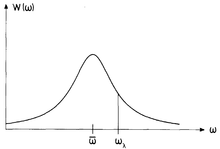 , circular frequency of the light wave in the laser resonator o,. As is well known from experimental physics, the emission of atoms possesses a certain line shape. A single atom therefore does not uniformly radiate light in the region of its line-width into the individual frequencies but rather according to an intensity distribution. In case of a Lorentzian line the intensity of a light wave with frequency ⍵λ and the central atomic transition frequency