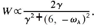 where we omitted a factor, I0. Here y is the line-width or, more precisely speaking, the half width at half intensity. Now let us recall that W is the
