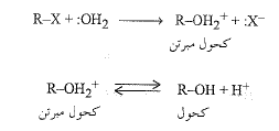 غير أن هناك جزيئات عادية تملك، أيضاً، الكترونات غير مشترك بها يمكن أن تكون أساسية، وعليه فهي تعمل نوكليوفيلات فالماء، مثلاً، يهاجم هاليد الألكيل معطياً في النهاية، كحولاً. غير أن الأكسجين يملك هيدروجينين، وعندما يربط نفسه مع كربون فلا يتكون الكحول ذاته مبدئياً بل الحمض المرافق، أو الكحول المبرتن. وهذا يغير ذاته، بسهولة، الى الكحول بفقدان بروتون.
