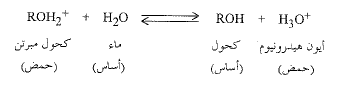ففي الوضع الحالي، مثلاً، يتحول الكحول المبرتن الى كحول، بانتقال بروتون الى الماء – وبقدر ما يكون الكحول أساسياً بقدر ما يكون أكثر وفرة.