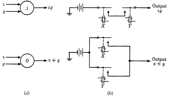 Whether these elements are constructed from relays or tubes, or other basic parts, will be immaterial in most of this chapter. The student may think in terms of relays, since, as we will show, it is possible to construct all the logical elements from relays alone. Often these relay circuits have very poor operating characteristics in comparison with circuits involving other components, but we will leave the discussion of electronic components to more advanced texts on computer design.