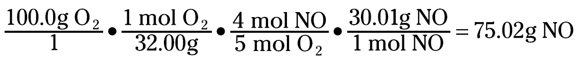 That 75.02 grams NO is your theoretical yield. But you can even calculate the amount of ammonia left over. You can figure the amount of ammonia consumed with this equation: