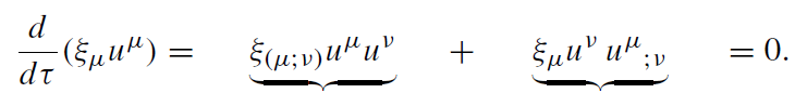 For a geodesic motion the quantity ξμ uμ is constant along the particle world line and hence it is an integral of motion. This follows from