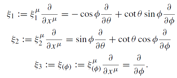 The latter vector generates rotation around a z-axis passing through the north θ = 0 and south θ = π poles of the black hole.