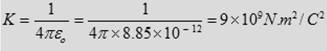 where K is the coulomb constant = 9 × 109 N.m2/C2.