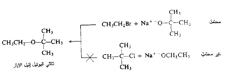 وإذا رغبنا في صنع ثنائي الكيل ايتر غير متناظر فإننا نملك خياراً بين اثنتين من تركيبات الكواشف، واحدة من هاتين التركيبتين تكون دائماً تقريباً أفضل من الأخرى. ففي تحضير ثالثي بوتيل إتيل الإيتر، على سبيل المثال، يمكن تصور التركيبتين التاليتين :