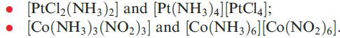 ‘Polymerization’ isomerism is a rather unfortunate term since we are actually not dealing with polymeric structures. Polymerization isomers denote complexes which have the same empirical formulae but different molecular masses. Examples of polymerization isomers are: