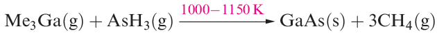 Since 1980, interest in organometallic compounds of Ga, In and Tl has grown, mainly because of their potential use as precursors to semiconducting materials such as GaAs and InP. Volatile compounds are sought that can be used in the growth of thin films by MOCVD (metal organic chemical vapour deposition) or MOVPE (metal organic vapour phase epitaxy) techniques. Precursors include appropriate Lewis base adducts of metal alkyls, e.g. Me3Ga.NMe3 and Me3In.PEt3. Reaction 1.1 is an example of the thermal decomposition of gaseous precursors