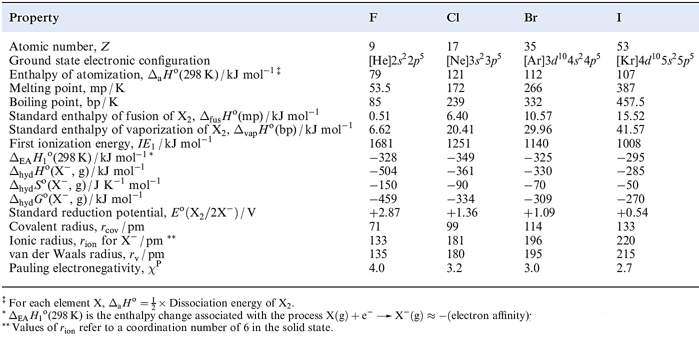 Table 1.1 Some physical properties of fluorine, chlorine, bromine and iodine.