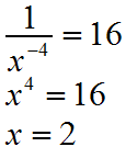 Perhaps you'd like to try solving some equations with negative exponents on variables. This works just like solving any other equation. Don't be scared by the fact that the exponent is negative. Just work it out and remember to "flip over" (invert) the number if it has a negative exponent.