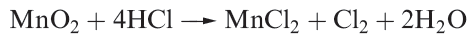 Dichlorine is a pale green-yellow gas with a characteristic odour. Inhalation causes irritation of the respiratory system and liquid Cl2 burns the skin. Reaction 1.1 can be used for small-scale synthesis, but, like F2, Cl2 may be purchased in cylinders for laboratory use.