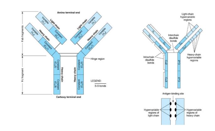 الشكل : تركيب الجسم المضاد (IgG كمثال )