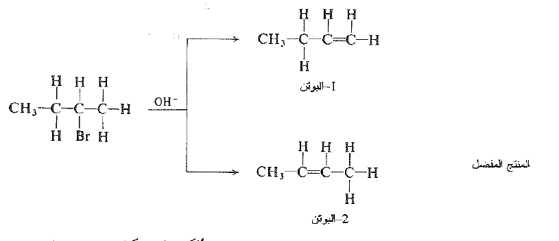 لنأخذ على سبيل المثال، بروميد ثانوي البوتيل. ان هجوم الاساس مع اي من الهيدروجينات B- الثلاثة عند (C-1) يقود إلى تشكل -1 البوتن ، وان الهجوم على أي من الهيدروجينين B- وعند (C-3) الى تشكل -2 البوتن. ونرى ان -2 البوتن هو المنتج المفضل على الرغم من ان عامل الاحتمالية الذي يساوي 2:3 والذي يعمل ضد تشكله.