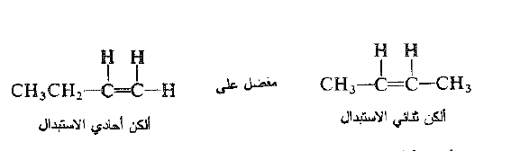 إذا ركزنا اهتمامنا، ليس على الهيدروجين المفقود وانما على الالكن المتشكل. نرى ما يلي: