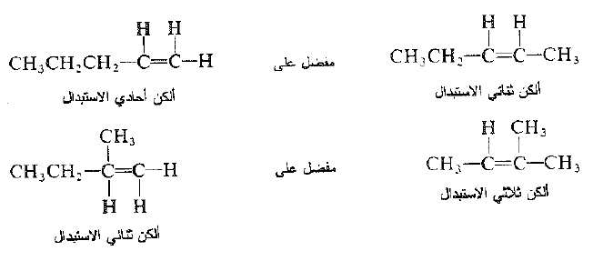 في الأمثلة الاخرى، نرى أن الالكنات ثنائية الاستبدال مفضلة على الالكانات احادية الاستبدال والالكانات ثلاثية الاستبدال تكون مفضلة على الالكانات ثنائية الاستبدال.