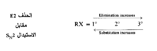 ونذكر بالنسبة لــ SN2 ان ترتيب التفاعلية هو عكس ما سبق. وعندما يتقدم المرء وفق السلاسل 1 ْ ، 2 ْ، 3 ْ، فإن التفاعلية تزداد بالنسبة لــ E2 وتتناقص بالنسبة لــ SN2.