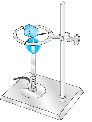 If a heat lamp is used, the crucible is placed on a clean, nonreactive surface, such as a wire screen covered with aluminum foil. The lamp is then positioned about 1 cm above the rim of the crucible and turned on. Charring takes place without further attention. The process is considerably accelerated if the paper is moistened with no more than one drop of concentrated ammonium nitrate solution. The residual carbon is eliminated with a burner, as described in the next paragraph. Considerably more attention must be paid if a burner is used to ash a filter paper because the burner produces much higher temperatures than a heat lamp. Thus, mechanical loss of precipitate may occur if moisture is expelled too rapidly in the initial stages of heating or if the paper bursts into flame. Also, partial reduction of some precipitates can occur through reaction with the hot carbon of the charring paper. This reduction is a serious problem if reoxidation following ashing is inconvenient. These difficulties can be minimized by positioning the crucible as illustrated in Figure 1.1. The tilted position allows for the easy access of air.