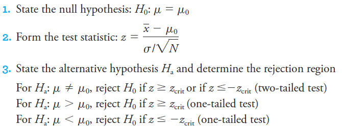 If a large number of results are available so that s is a good estimate of s, the z test is appropriate. The procedure that is used is summarized below:
