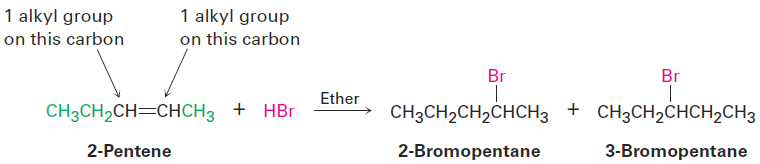 When both double-bonded carbon atoms have the same degree of substitution, a mixture of addition products results.