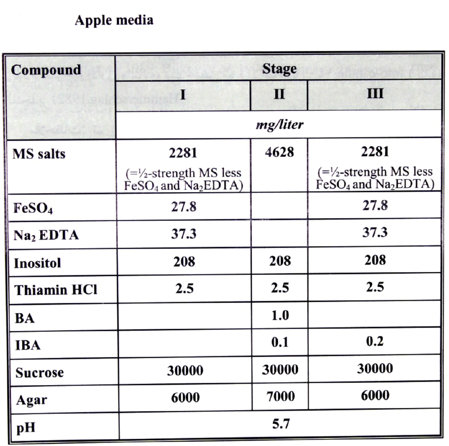 ملاحظات: التفاحيات دقيقة جداً في احتياجاتها الخاصة والتي تختلف في تفاصيل دقيقة من نوع لآخر، من صنف لصنف وكذلك من سلالة لسلالة. بعض التجارب عادة ما تكون ضرورية لتحديد العوامل المحددة للتحفيز والوصول لأفضل استجابة
