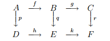 commutes if and only if q ◦ f = h ◦ p and r ◦ g = k ◦ q.