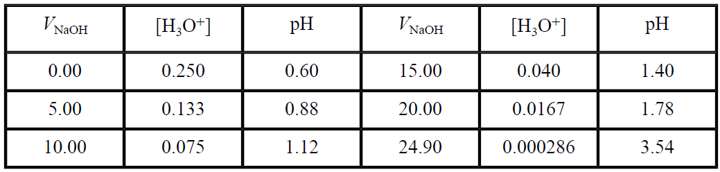 Compute the pH vs. volume curve for the titration of 10.0 mL of 0.25 M HCl with 0.10 M NaOH.