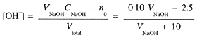 then, before complete neutralization [H3O+] after the addition of V mL of NaOH solution is