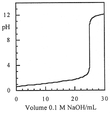 Figure 1.1. pH titration curve for titration of 10 mL of 0.25 M HCl with 0.10 M NaOH.
