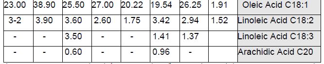 ويشير الجدول العام الى قلة دهون حليب الإبل مقارنة بالجاموس ، وتشكل الحوامض الدهنية غير المشبعة المتعددة %2 من مجموع الدهون ، وتكون الدهون متجانسة الانتشار مما تعطي للحليب المظهر الناعم . ويمتد تركيز الدهون من 1.1-5.5 % اعتماداً على ظروف عيش الحيوان وهي تشبه دهون الأبقار من حيث النسب . والجدول التالي يوضح بعض الحوامض الدهنية المسجلة في حليب الإبل مقارنة مع حليب الأبقار مقدرة غم/ 100 غم من دهن حليب الإبل .