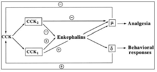 يعمل كابتا للجوع وكذلك في تحمل بعض المواد المخدرة مثل المورفين والهيروين ، نقصه يؤدي الى بعض امراض المناعة الذاتية وكذلك ظهور متلازمة الامتصاص المتعثرMalabsorption Syndrome، كما ان اعتلال انتاجه يؤدي الى بعض الامراض العصبية مثل القلق Anxiety وانفصام الشخصية لانه يؤثر في بعض مستلمات الخلايا العصبية ويؤدي الى معطيات مختلفة كما في الشكل الاتي :