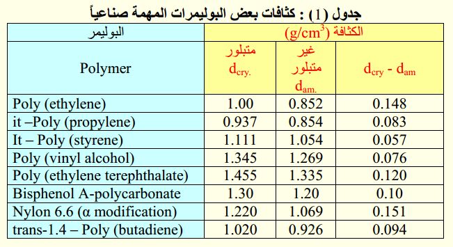 تعيين درجة التبلور : من قياس كثافة البوليمر