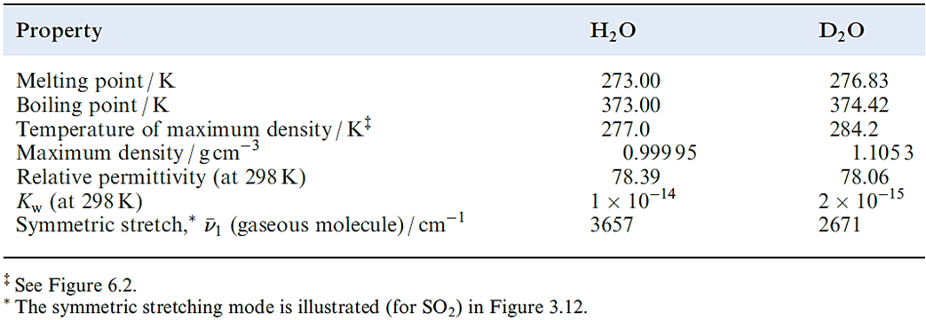 Table 9.2 Selected properties of H2O and D2O (‘heavy water’).
