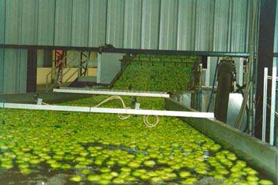 ١- تليين المواد الصلبة العالقة بالثمار لتسهيل فصلها.