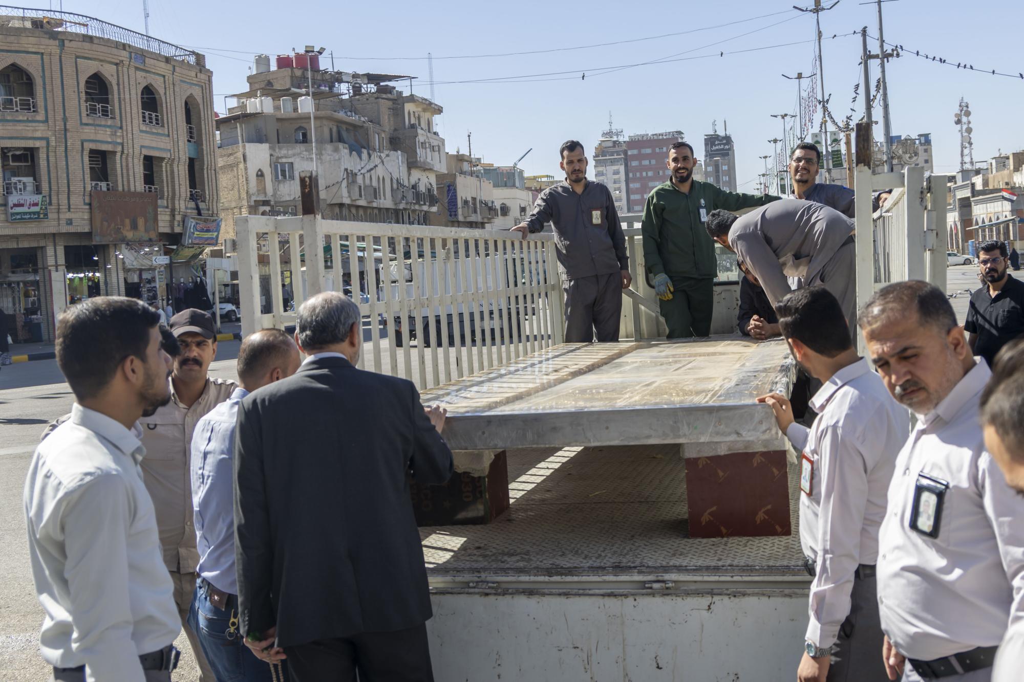 باشرت ملاكات قسم صناعة شبابيك الأضرحة الشريفة وأبوابها بتثبيت باب قبلة حرم أبي الفضل العباس (عليه السلام) بعد إكمال أعمال صيانته وتذهيبه. ويأتي هذا العمل ضمن الجهود المستمرة لصيانة الموروث الإسلامي والحفاظ على المعالم التاريخية الأصيلة للحرم الشريف. وقال رئيس القسم السيد ناظم الغرابي، إنَّ "عملية صيانة الباب وترميمه بدأت بتفكيك شامل، حيث جرى فحص دقيق لجميع الأجزاء المعدنية والزخرفية لتحديد الأجزاء المتضررة ومعالجتها". وأضاف أنَّ "عملية الترميم والتذهيب جرت بعناية فائقة لضمان المحافظة على الهوية الأصلية والجمالية للباب، وإعادة الرونق الذي يليق بمكانته". وأشار الغرابي إلى أنَّ "هذا المشروع نُفِّذ بالكامل على أيدي أمهر الحرفيين والمهندسين العراقيين العاملين في القسم"، مؤكداً "كفاءة القدرات الوطنية في إنجاز هذه الأعمال النوعية".