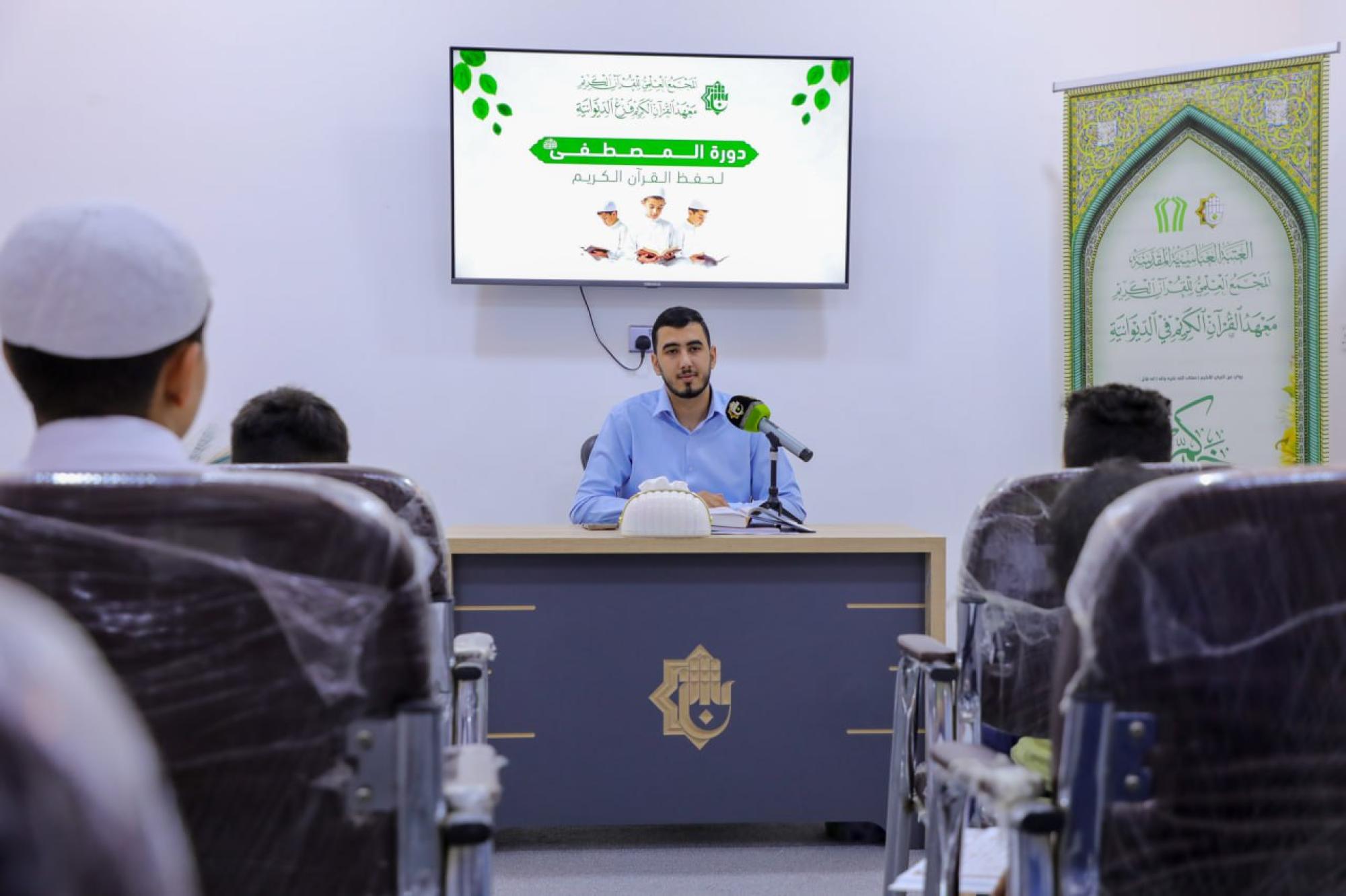 يواصل المَجمَعُ العلميّ للقرآن الكريم في العتبة العبّاسية المقدّسة، جهوده في نشر الثقافة القرآنيّة وتعزيز الوعي الدينيّ، من خلال إقامة دورةٍ لحفظ القرآن الكريم في محافظة الديوانية، وتنظيم محفلٍ قرآنيٍّ في مدينة النجف. وأطلق المَجمَعُ العلميّ دورةً جديدة لحفظ القرآن الكريم بعنوان "دورة المصطفى (صلّى الله عليه وآله)" بإشراف معهد القرآن الكريم/ فرع الديوانية التابع للمَجمَع، وبمشاركة عشرة طلّابٍ تحت إشراف الدكتور سالم الصكري. وقال السيد خالد العبادي من فرع المعهد، إنّ "الدورة تأتي ضمن الجهود الرامية إلى إعداد جيلٍ قرآنيٍّ مؤمنٍ برسالة القرآن الكريم، وتحقيق أهدافه السامية ونشر علومه في أوساط المجتمع"، مشيرًا إلى أنّ "المعهد يواصل برامجه التعليمية والتدريبية في المحافظات كافة، ضمن خطّةٍ متكاملةٍ لنشر الثقافة القرآنية". وفي سياقٍ متّصل، نظّم معهدُ القرآن الكريم في النجف الأشرف التابع للمَجمَع، محفلًا قرآنيًا في ناحية العبّاسية بمناسبة الأيام الفاطمية، وذلك في مضيف معتمد مكتب المرجعية الدينية العُليا. واستُهلّ المحفل بتلاوةٍ عطرة للقارئ محمد علي رشيد، تلتها كلمةٌ لمعتمد مكتب المرجعية الدينية العُليا السيد حسين آل يحيى الموسوي، ثم قدّم الحافظ محمد ضياء أبياتًا شعرية في مدح السيدة الزهراء(عليها السلام)، أعقبها القارئ محمد سعيد العارضي بتلاوةٍ مباركة، ليُختتم المحفل بمجلس عزاءٍ قدّمه الشيخ وسام السبتي.
